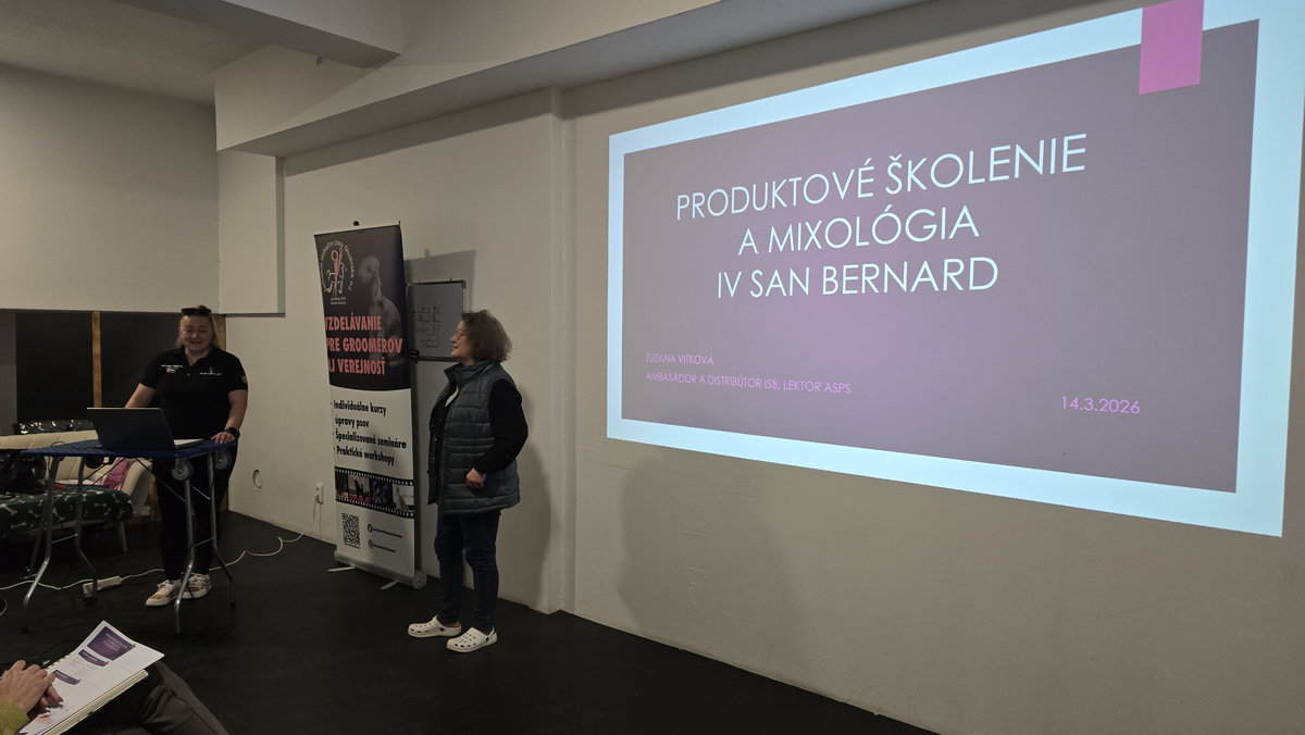 Veterinárna kozmetika Iv San Bernard a jej profesionálne uplatnenie v rukách špecialistov na SPA v salónoch pre psov – toto bola obsiahla téma seminára vo Zvolene 14.3.2026. Sprevádzala nás ňou ambasádorka ISB pre Slovensko a lektorka ASPS Zuzka Vitková. Po predošlých „SPA“ seminároch sme mali opäť vysoké očakávania, ktoré boli nanajvýš naplnené.