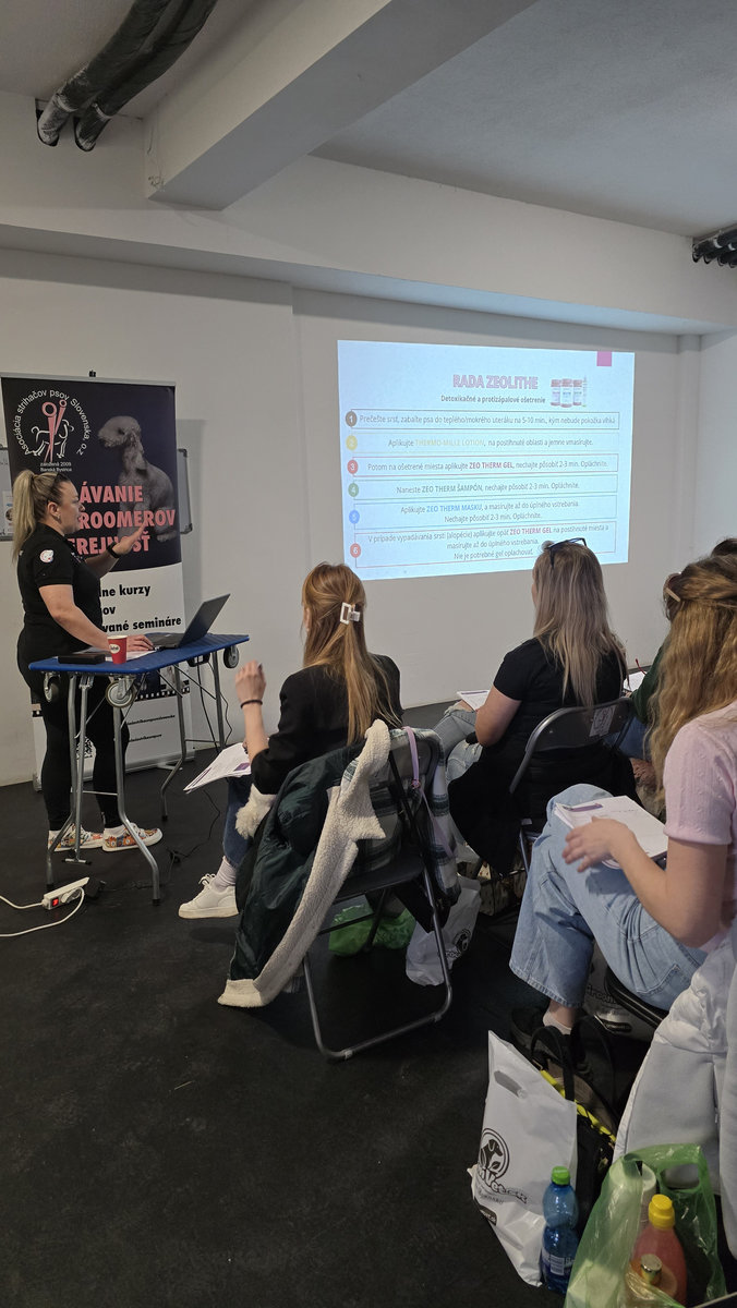 Odrazili sme sa od opakovania základných poznatkov o fungovaní kože a srsti. Postupne sme prešli všetky produktové rady , ich zloženie a z toho plynúce uplatnenie v praxi. Dozvedeli sme sa, ktoré produkty sú najvhodnejšie na bežné použitie v salóne či doma u klienta a ktoré majú cielenejšie využitie pri špecifických situáciách či problémoch s kožou a srsťou.